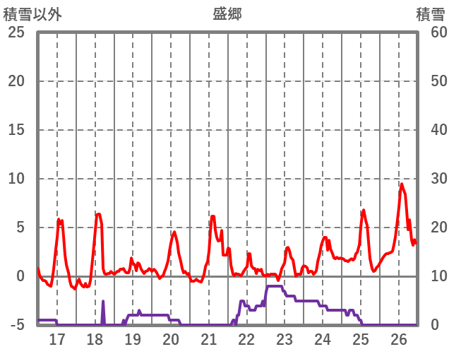 | 日 | 時 | 気温 | 降水 | 風向/風速 | 日照 | 積雪 | 降雪 |