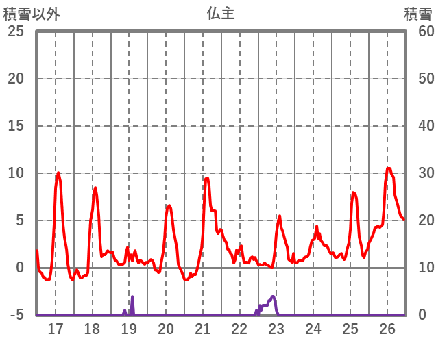 | 日 | 時 | 気温 | 降水 | 風向/風速 | 日照 | 積雪 | 降雪 |