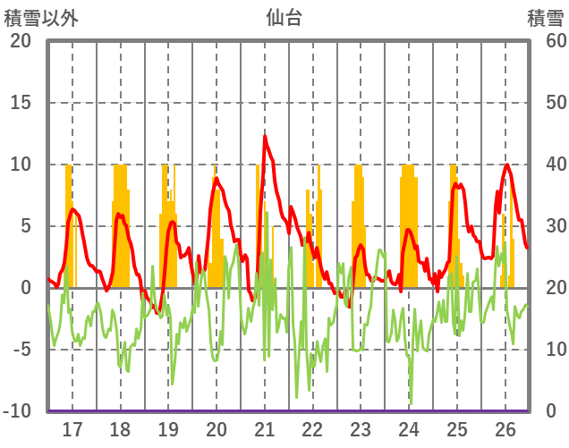 | 日 | 時 | 気温 | 降水 | 風向/風速 | 日照 | 積雪 | 降雪 |