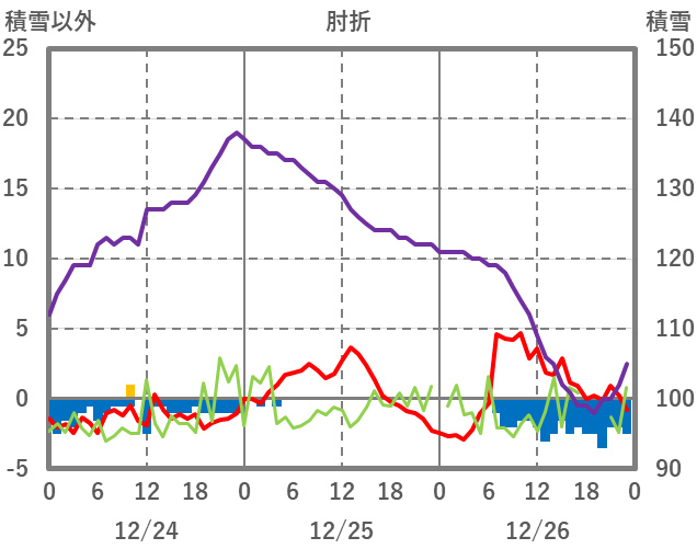 | 日 | 時 | 気温 | 降水 | 風向/風速 | 日照 | 積雪 | 降雪 |