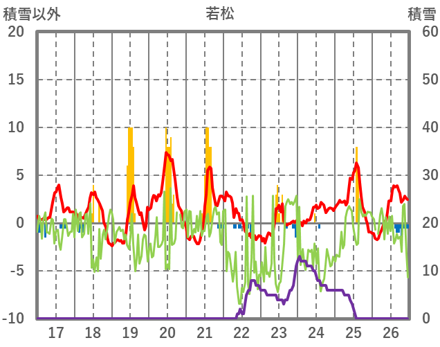 | 日 | 時 | 気温 | 降水 | 風向/風速 | 日照 | 積雪 | 降雪 |