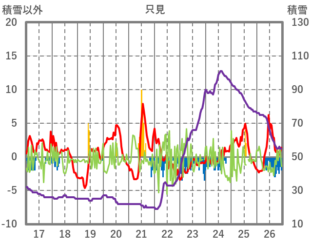 | 日 | 時 | 気温 | 降水 | 風向/風速 | 日照 | 積雪 | 降雪 |