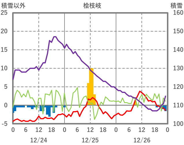 | 日 | 時 | 気温 | 降水 | 風向/風速 | 日照 | 積雪 | 降雪 |