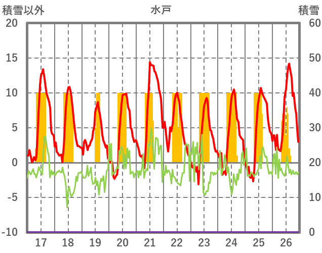 | 日 | 時 | 気温 | 降水 | 風向/風速 | 日照 | 積雪 | 降雪 |