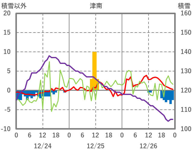 | 日 | 時 | 気温 | 降水 | 風向/風速 | 日照 | 積雪 | 降雪 |
