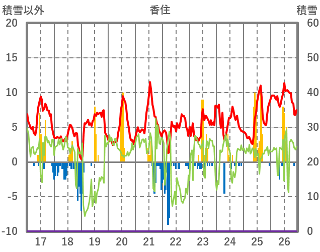| 日 | 時 | 気温 | 降水 | 風向/風速 | 日照 | 積雪 | 降雪 |