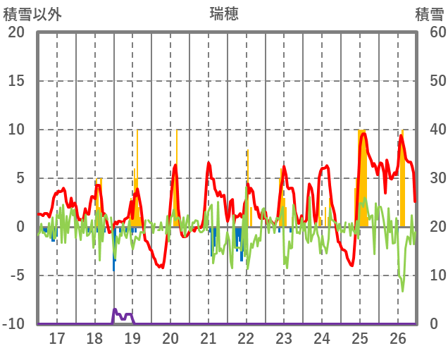 | 日 | 時 | 気温 | 降水 | 風向/風速 | 日照 | 積雪 | 降雪 |