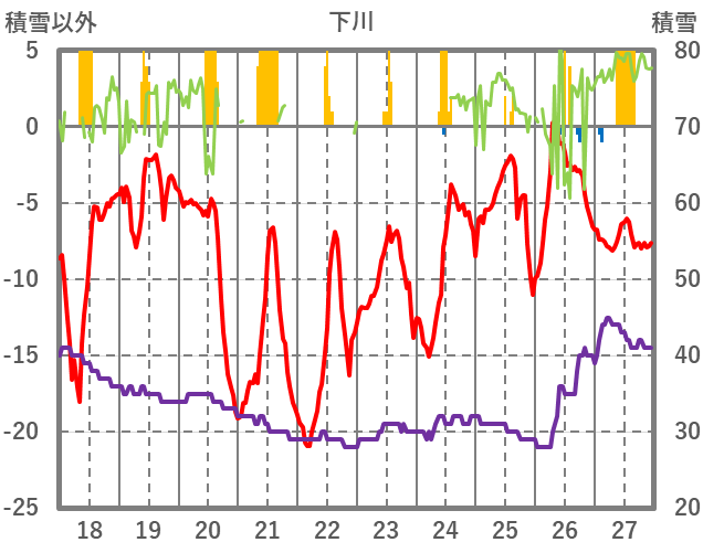 | 日 | 時 | 気温 | 降水 | 風向/風速 | 日照 | 積雪 | 降雪 |