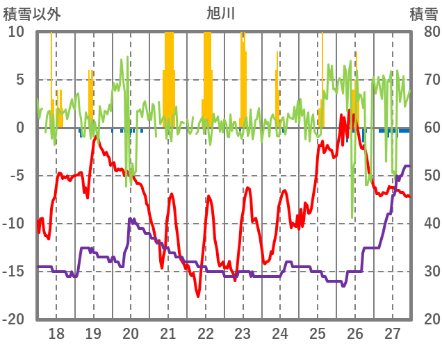| 日 | 時 | 気温 | 降水 | 風向/風速 | 日照 | 積雪 | 降雪 |