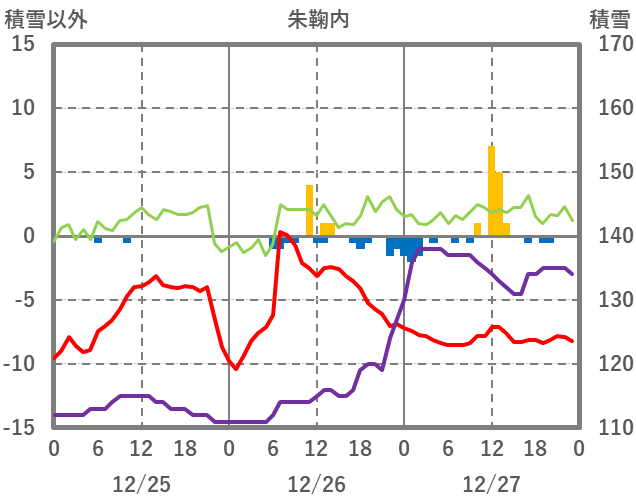 | 日 | 時 | 気温 | 降水 | 風向/風速 | 日照 | 積雪 | 降雪 |