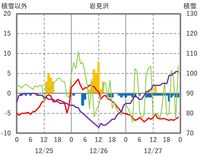 | 日 | 時 | 気温 | 降水 | 風向/風速 | 日照 | 積雪 | 降雪 |
