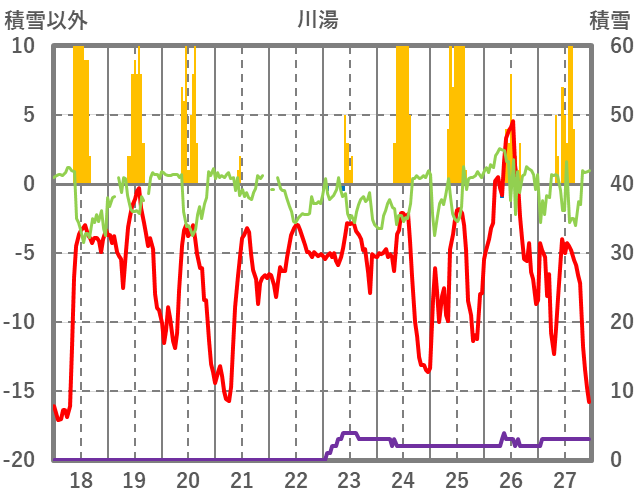 | 日 | 時 | 気温 | 降水 | 風向/風速 | 日照 | 積雪 | 降雪 |