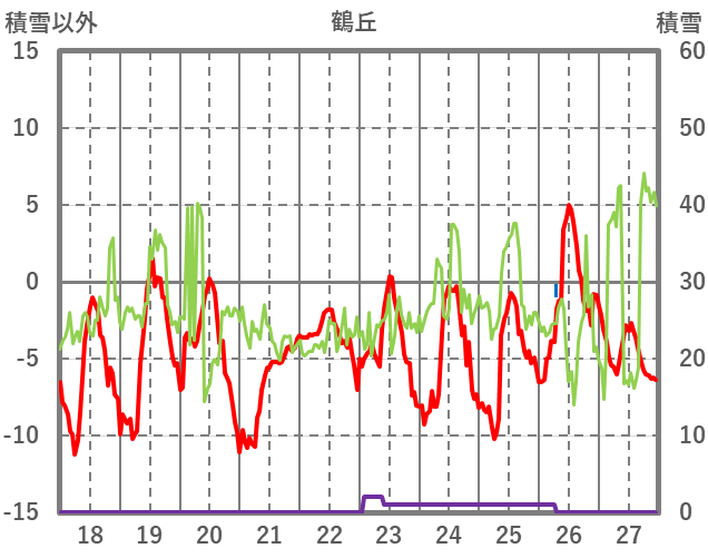 | 日 | 時 | 気温 | 降水 | 風向/風速 | 日照 | 積雪 | 降雪 |