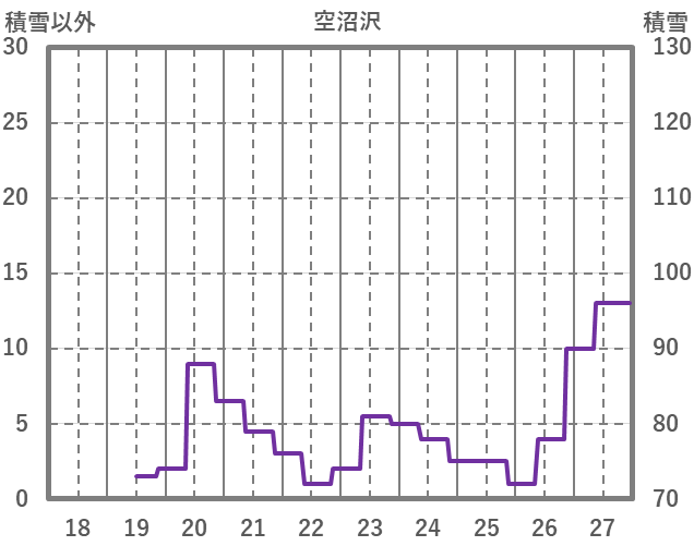 | 日 | 時 | 気温 | 降水 | 風向/風速 | 日照 | 積雪 | 降雪 |