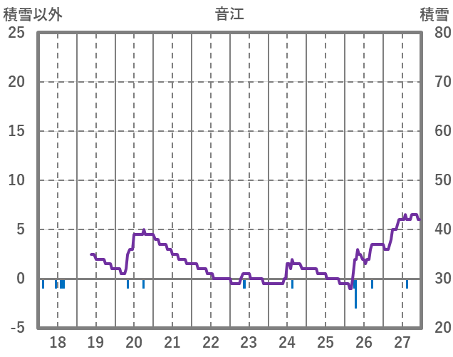 | 日 | 時 | 気温 | 降水 | 風向/風速 | 日照 | 積雪 | 降雪 |