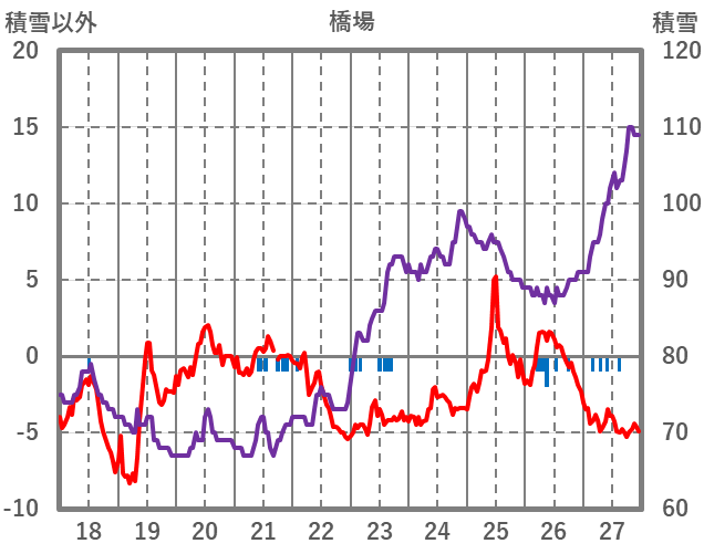 | 日 | 時 | 気温 | 降水 | 風向/風速 | 日照 | 積雪 | 降雪 |