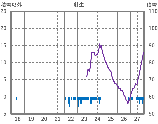 | 日 | 時 | 気温 | 降水 | 風向/風速 | 日照 | 積雪 | 降雪 |