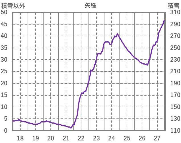 | 日 | 時 | 気温 | 降水 | 風向/風速 | 日照 | 積雪 | 降雪 |