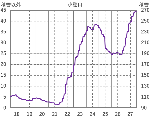 | 日 | 時 | 気温 | 降水 | 風向/風速 | 日照 | 積雪 | 降雪 |