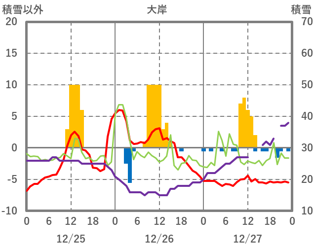 | 日 | 時 | 気温 | 降水 | 風向/風速 | 日照 | 積雪 | 降雪 |