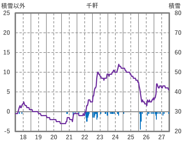 | 日 | 時 | 気温 | 降水 | 風向/風速 | 日照 | 積雪 | 降雪 |