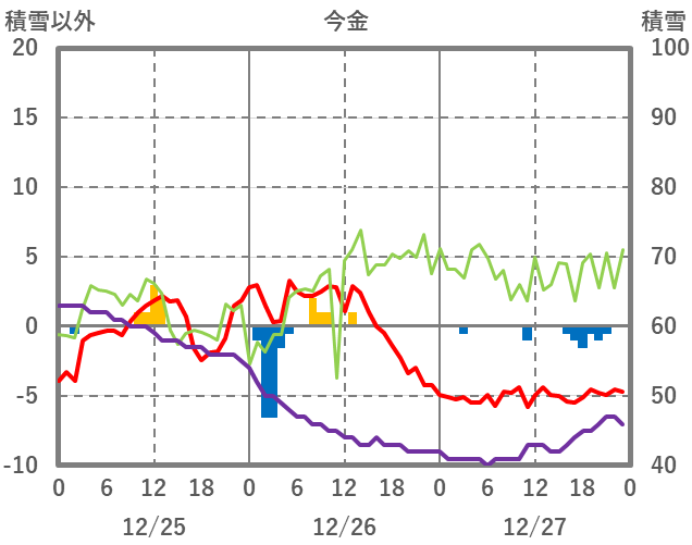 | 日 | 時 | 気温 | 降水 | 風向/風速 | 日照 | 積雪 | 降雪 |