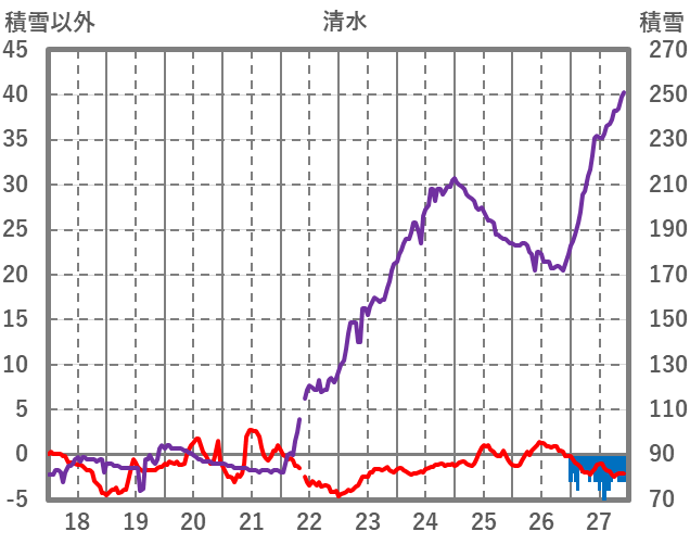 | 日 | 時 | 気温 | 降水 | 風向/風速 | 日照 | 積雪 | 降雪 |