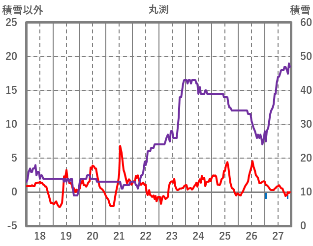 | 日 | 時 | 気温 | 降水 | 風向/風速 | 日照 | 積雪 | 降雪 |