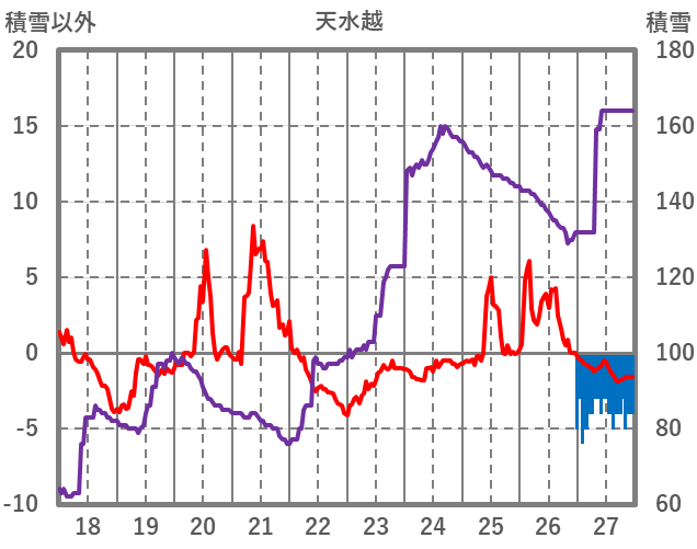 | 日 | 時 | 気温 | 降水 | 風向/風速 | 日照 | 積雪 | 降雪 |