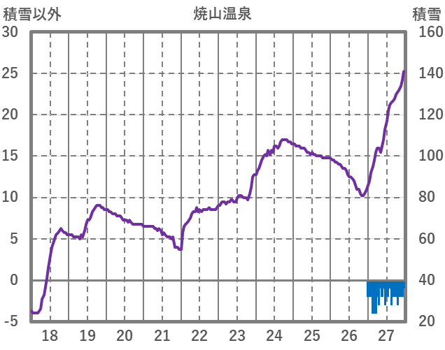 | 日 | 時 | 気温 | 降水 | 風向/風速 | 日照 | 積雪 | 降雪 |