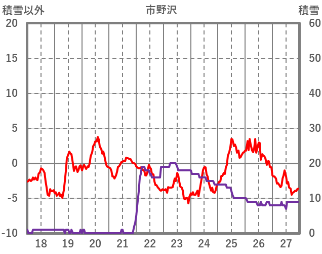 | 日 | 時 | 気温 | 降水 | 風向/風速 | 日照 | 積雪 | 降雪 |