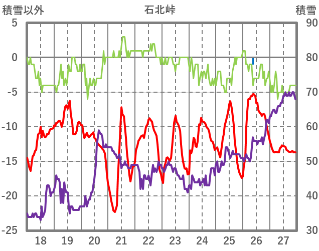 | 日 | 時 | 気温 | 降水 | 風向/風速 | 日照 | 積雪 | 降雪 |