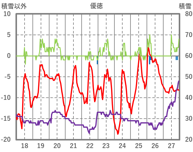 | 日 | 時 | 気温 | 降水 | 風向/風速 | 日照 | 積雪 | 降雪 |