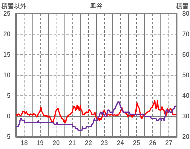 | 日 | 時 | 気温 | 降水 | 風向/風速 | 日照 | 積雪 | 降雪 |