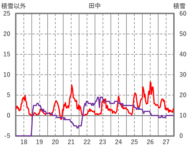 | 日 | 時 | 気温 | 降水 | 風向/風速 | 日照 | 積雪 | 降雪 |
