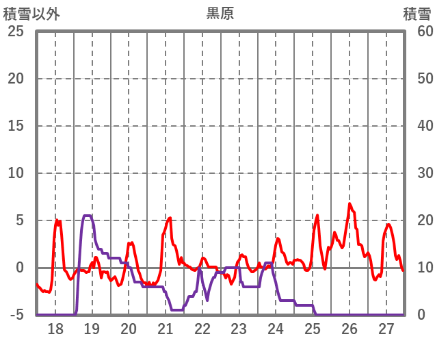 | 日 | 時 | 気温 | 降水 | 風向/風速 | 日照 | 積雪 | 降雪 |