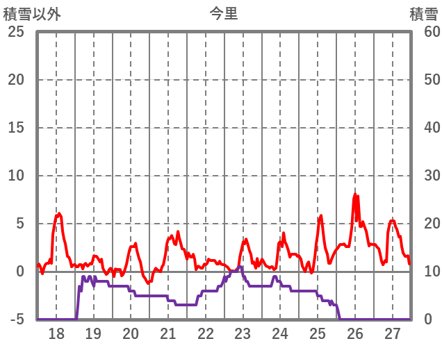 | 日 | 時 | 気温 | 降水 | 風向/風速 | 日照 | 積雪 | 降雪 |