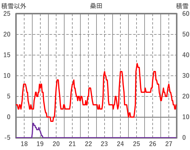 | 日 | 時 | 気温 | 降水 | 風向/風速 | 日照 | 積雪 | 降雪 |