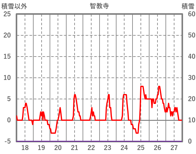 | 日 | 時 | 気温 | 降水 | 風向/風速 | 日照 | 積雪 | 降雪 |