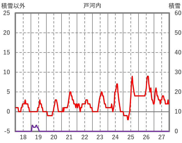 | 日 | 時 | 気温 | 降水 | 風向/風速 | 日照 | 積雪 | 降雪 |