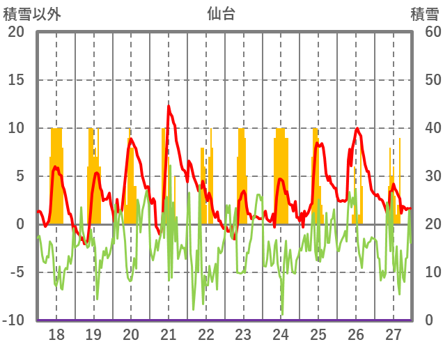 | 日 | 時 | 気温 | 降水 | 風向/風速 | 日照 | 積雪 | 降雪 |