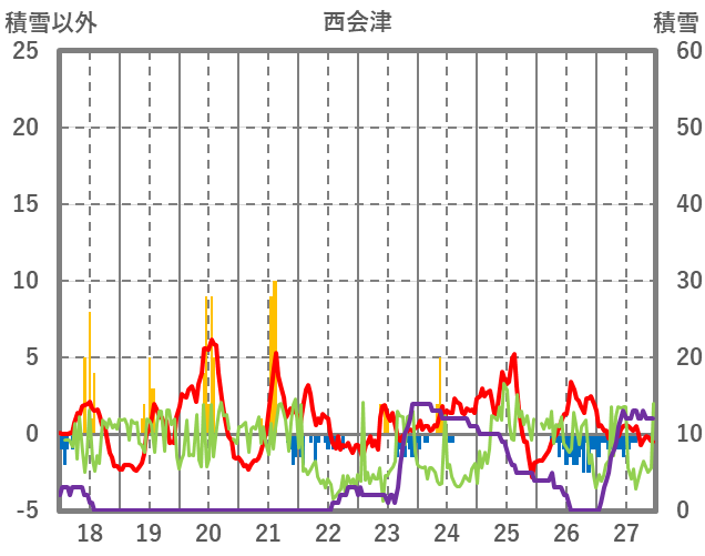 | 日 | 時 | 気温 | 降水 | 風向/風速 | 日照 | 積雪 | 降雪 |