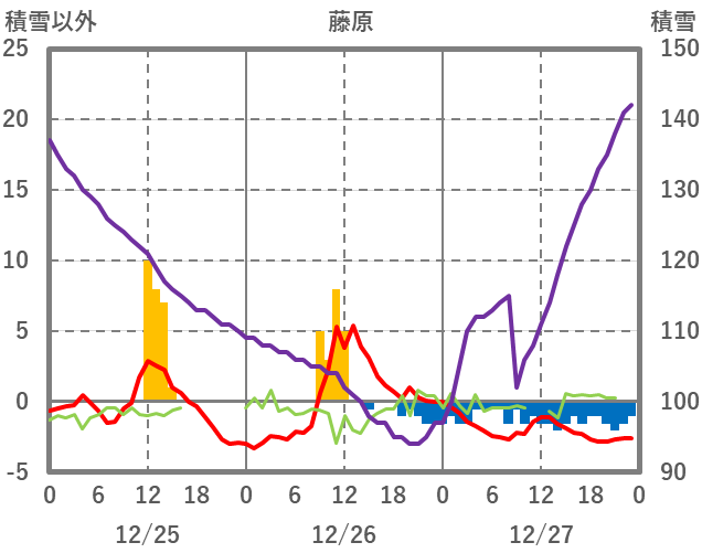 | 日 | 時 | 気温 | 降水 | 風向/風速 | 日照 | 積雪 | 降雪 |