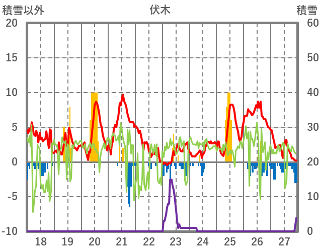 | 日 | 時 | 気温 | 降水 | 風向/風速 | 日照 | 積雪 | 降雪 |