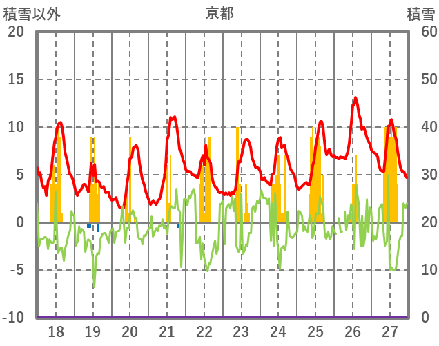 | 日 | 時 | 気温 | 降水 | 風向/風速 | 日照 | 積雪 | 降雪 |