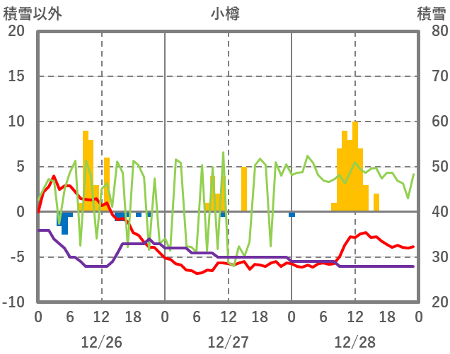 | 日 | 時 | 気温 | 降水 | 風向/風速 | 日照 | 積雪 | 降雪 |