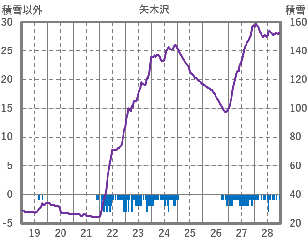 | 日 | 時 | 気温 | 降水 | 風向/風速 | 日照 | 積雪 | 降雪 |