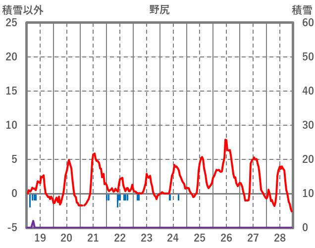 | 日 | 時 | 気温 | 降水 | 風向/風速 | 日照 | 積雪 | 降雪 |