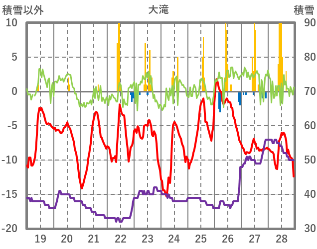 | 日 | 時 | 気温 | 降水 | 風向/風速 | 日照 | 積雪 | 降雪 |