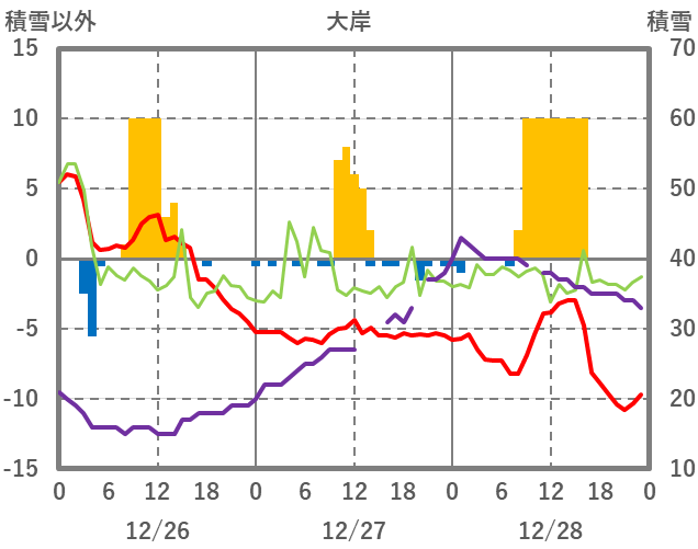 | 日 | 時 | 気温 | 降水 | 風向/風速 | 日照 | 積雪 | 降雪 |